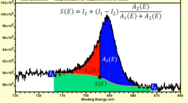 Shirley本底扣除方法中,其基本假设是:高能端的电子将部分地被非弹散射,形成低能端电子的本底噪声。定量地说便是,对于初态能量为E的光电子,在到达探测器之前: